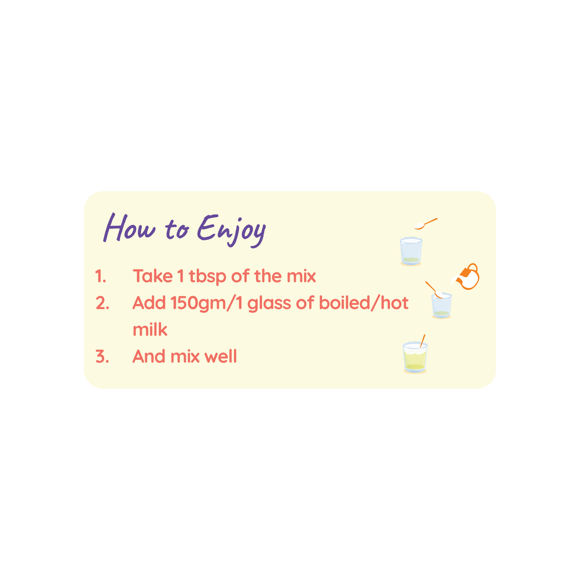 Mix 2-3 tbsp with warm milk or water for a quick, nutritious drink.